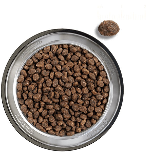 Fresh poultry meat (30 %); Rice (23 %); Poultry protein, low ash, dried (19 %); Maize; Fish meal from seafish (6 %); Poultry fat; Vegetable oil (palm, coconut); Egg, dried (2.5 %); Gelatine, hydrolysed (2.5 %); Brewers’ yeast, dried (2.5 %); Carob pods, dried; Dried beet pulp, desugared; Dicalcium phosphate; Poultry liver, hydrolysed; Linseed; Chia seeds; Sodium chloride; Potassium chloride