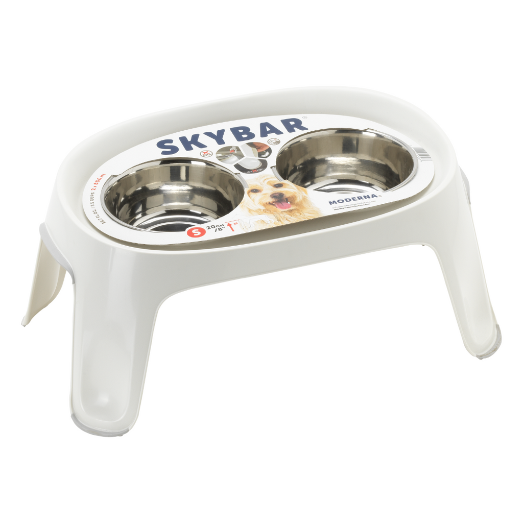 The Dinnertime Skybar Small is a compact and stylish pet feeding station designed to elevate your pet’s food and water bowls, promoting better posture and more comfortable eating. Perfect for small dogs or cats, it helps reduce strain on your pet's neck and joints during mealtime. The sleek, modern design fits well in any home, while its durable construction ensures long-lasting use. The Skybar Small is easy to clean and provides a convenient, ergonomic solution for pet owners looking to improve their pet's dining experience.