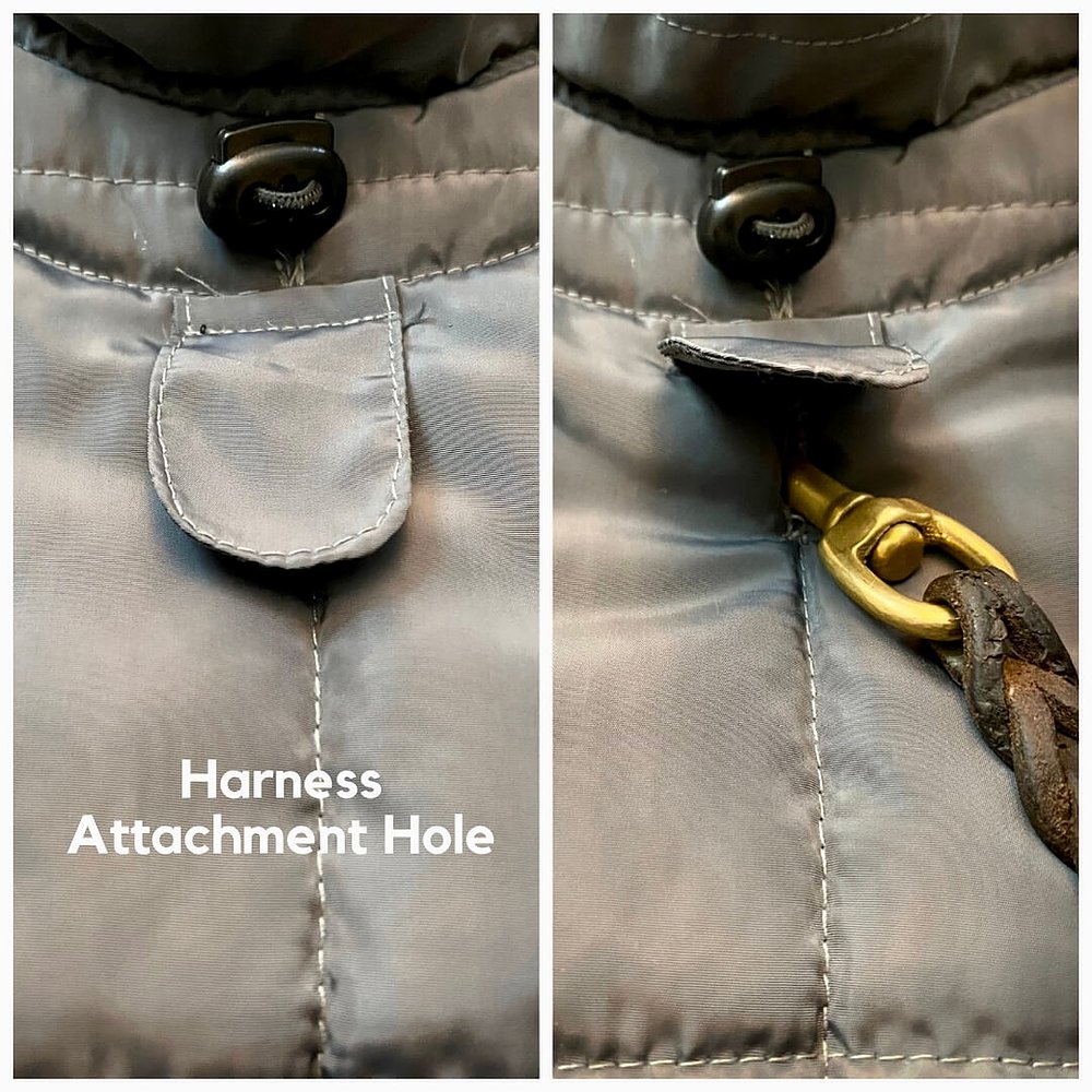 To ensure the safest fit, this coat has a leash/harness opening and reflective strips.