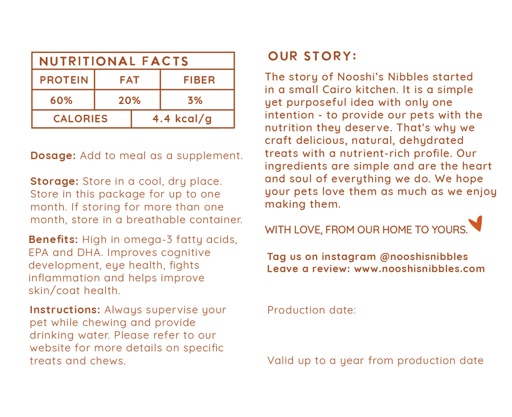 Chicken feet are naturally rich in calcium, glucosamine, and chondroitin which improve joint health. Supports gum and dental health