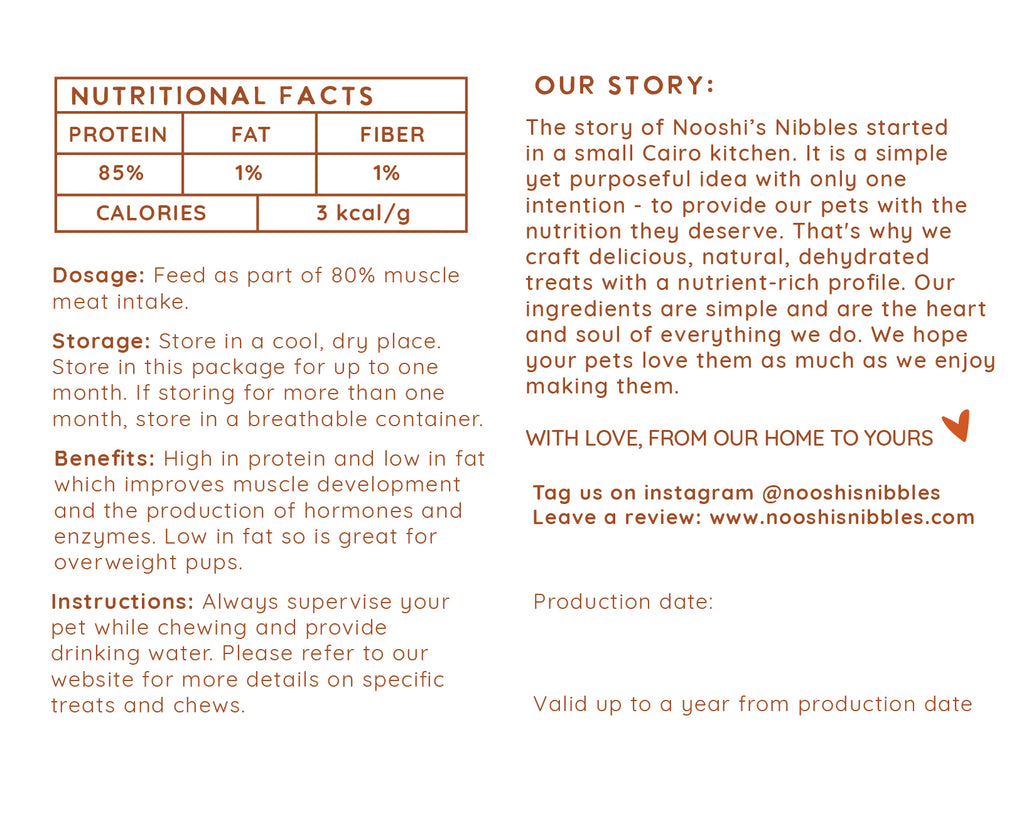 High in protein which improves muscle development and the production of hormones and enzymes. Low in fat so is great for overweight pups. A novel protein so is suitable for dogs with food allergies or sensitivities.