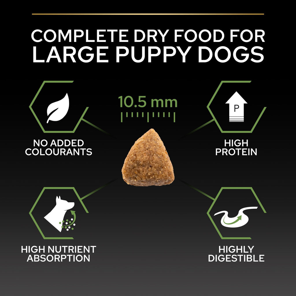 PURINA® PRO PLAN® DOG Large Athletic Puppy with OPTISTART® has been created for large breed puppies who have a naturally athletic physique. This expertly formulated complete food will help him meet the daily challenges that life throws at him by providing him with all the nutrients he needs as part of his healthy lifestyle. PRO PLAN® DOG Large Athletic Puppy with OPTISTART® helps support their healthy joints, helps support their long-term health as they begin their journey to adulthood, and enables their developing immune system to react efficiently. This food is also specially formulated for dental care, and contains nutrients at a balance specifically chosen for their size and age. Made with delicious, high quality pieces of chicken, this food will meet their nutritional needs every day - so they can concentrate on growing up and having fun. This food is also suitable for gestating and lactating bitches. Try it today to see the difference it makes to your puppy.