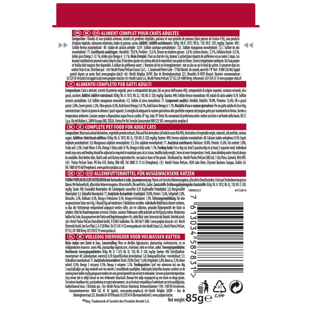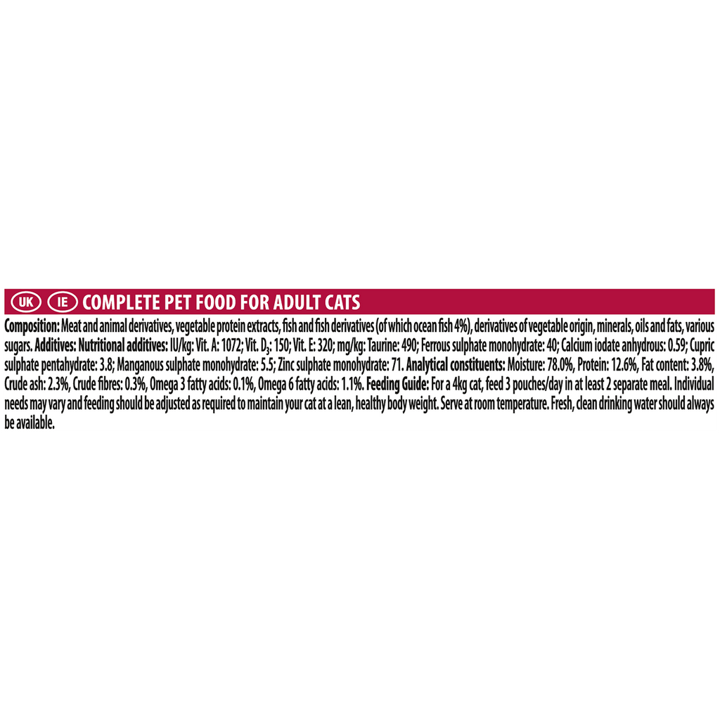 Feeding Guide: For an average adult cat (4kg), feed 3 pouches per day in at least 2 separate meals. The adult maintenance averages are based on moderately active cats at normal environmental temperatures. Individual needs vary and feeding should be adjusted as required to maintain your cat at a lean, healthy body weight. Serve at room temperature. Fresh, clean drinking water should always be available. |