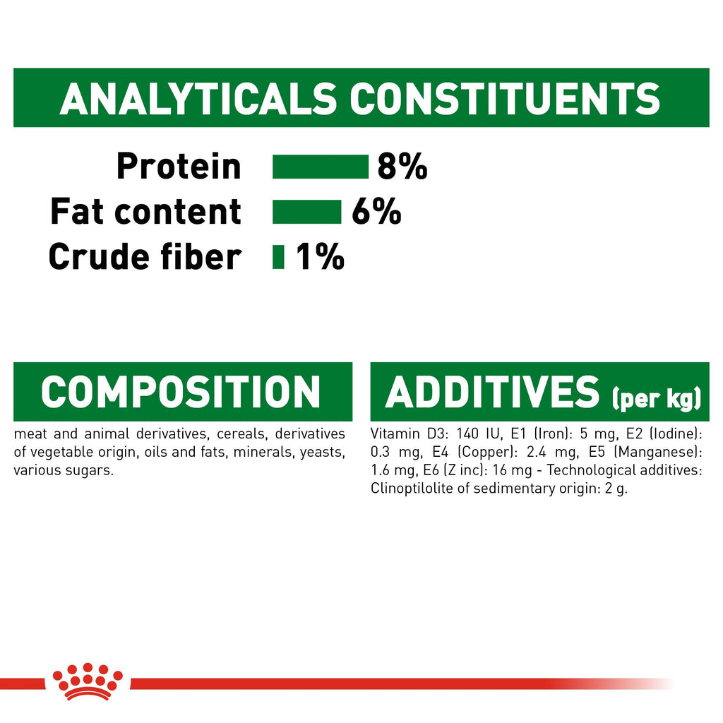 By containing a combination of nutrients with high quality protein (such as L.I.P – known for its high digestibility) as well as prebiotics, ROYAL CANIN® Mini Puppy in Gravy supports the digestive health and balance of intestinal flora, which contributes to good stool quality by reducing faecal smell and quantity.