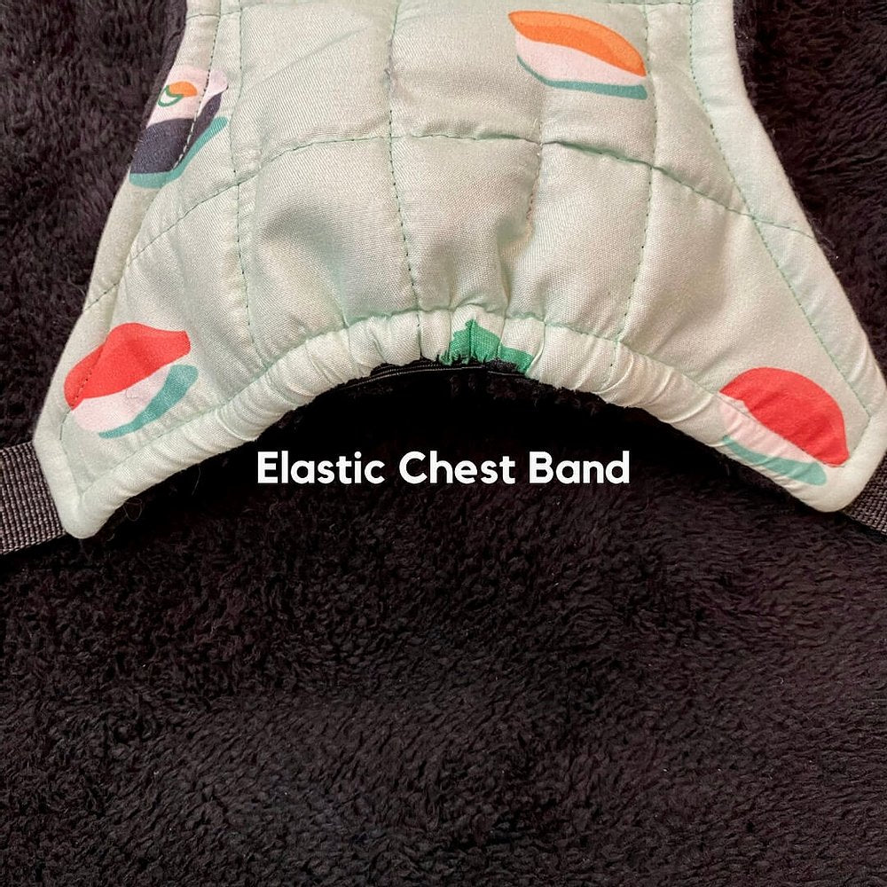 To ensure the best fit, this coat has an adjustable chest strap with a snap buckle, rear leg elastic straps and an elastic neck toggle.